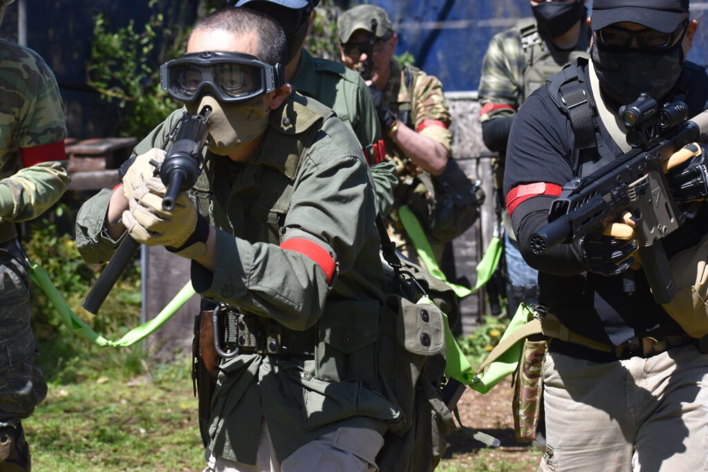 という流れで「民間」チームはセーフティに戻って弾をモリモリ詰めて突撃の流れである。雨あられのごとく。(※ 途中までは弾無し銃でフィールドインして進行しております)